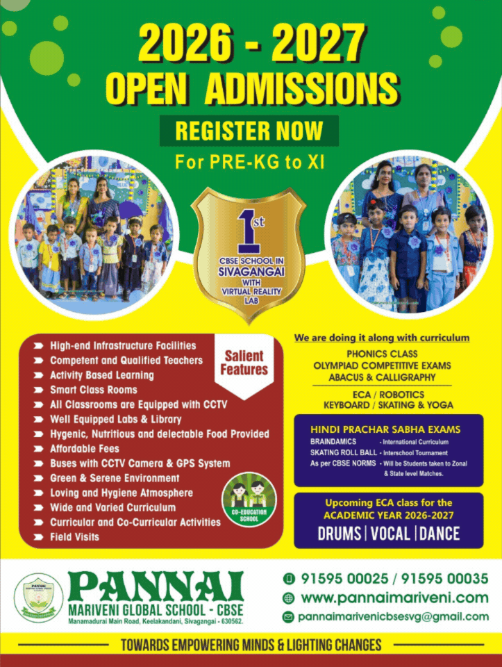 With highly qualified faculty, smart classrooms, and well-equipped laboratories, Pannai Mariveni Global School ensures that learning is engaging, experiential, and future-focused.